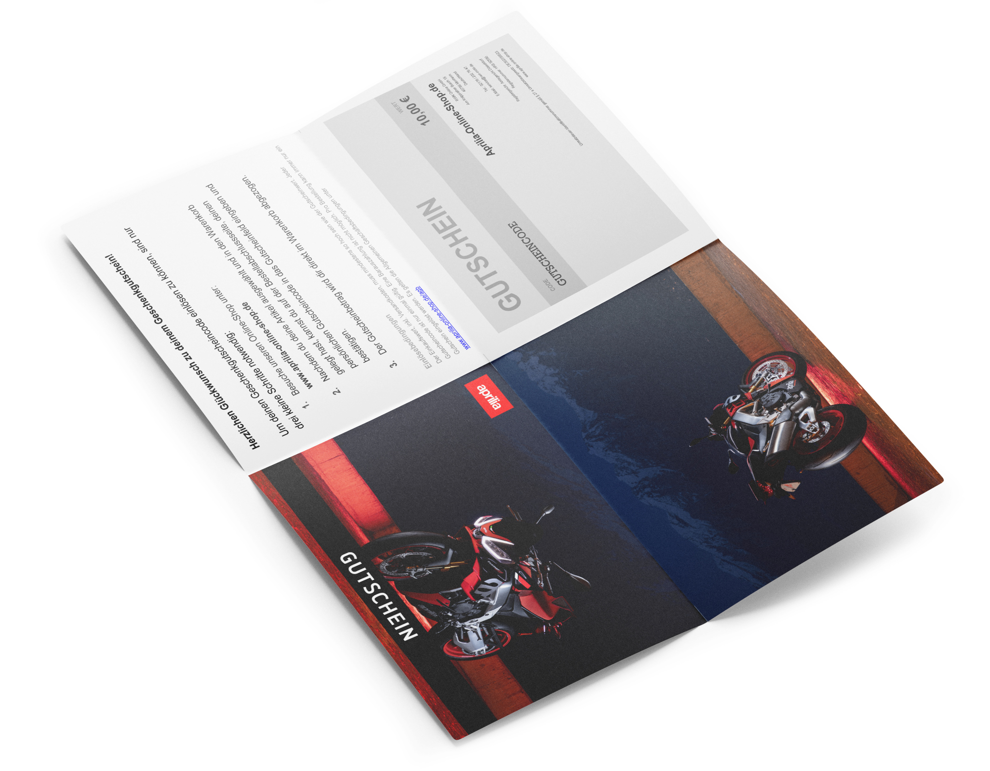 Épargne-toi le stress avec unbon d'achat Aprilia Onlineshop. Nos bons d'achat peuvent être utilisés en ligne*. Il te suffit de sélectionner le bon souhaité et le cadeau parfait pour tes amis ou ta famille est prêt.